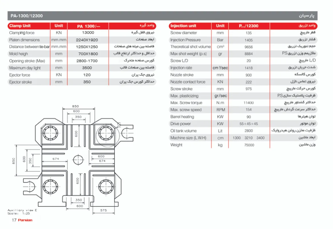 دستگاه تزریق پلاستیک 1300 تن دو صفحه ایآرشیو صنعت -