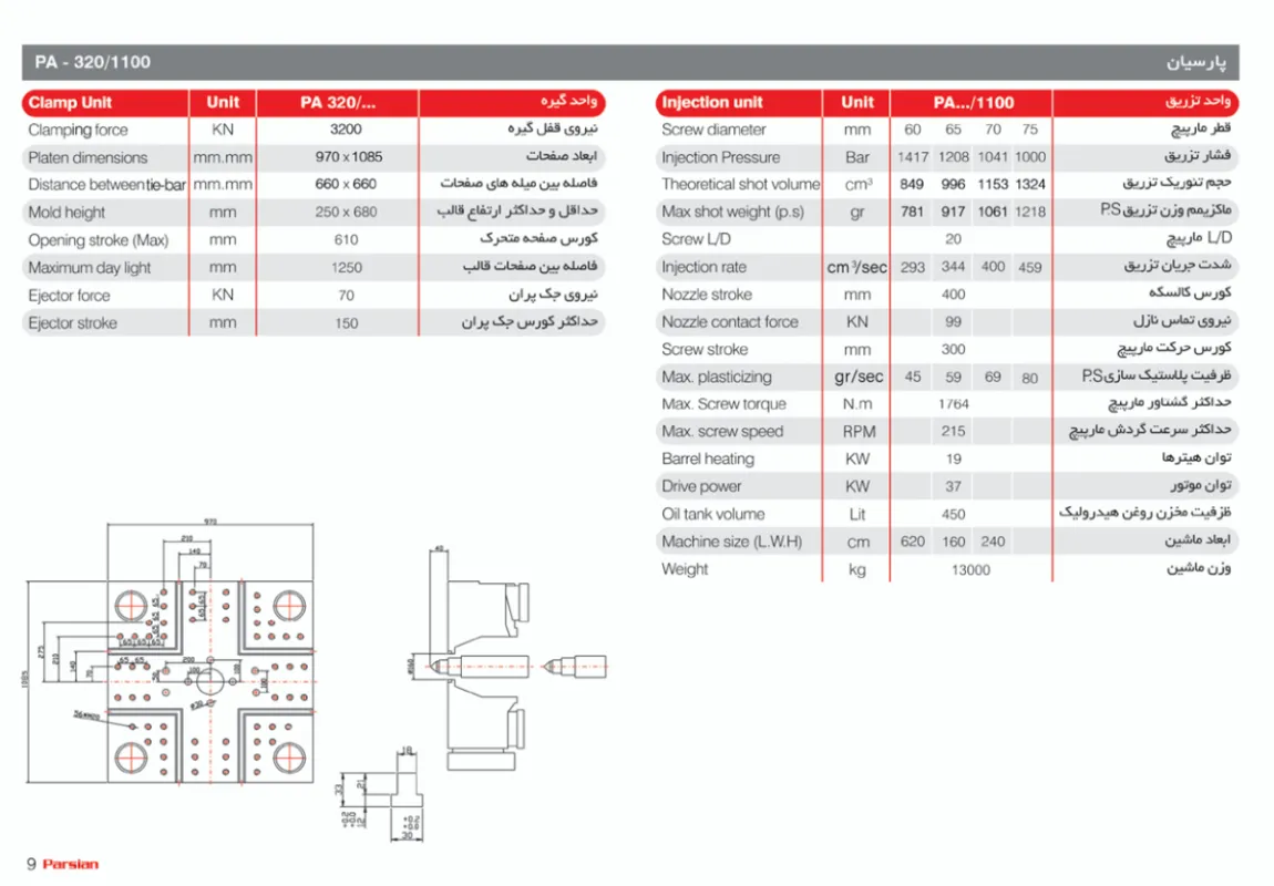 دستگاه تزریق پلاستیک 320 تن