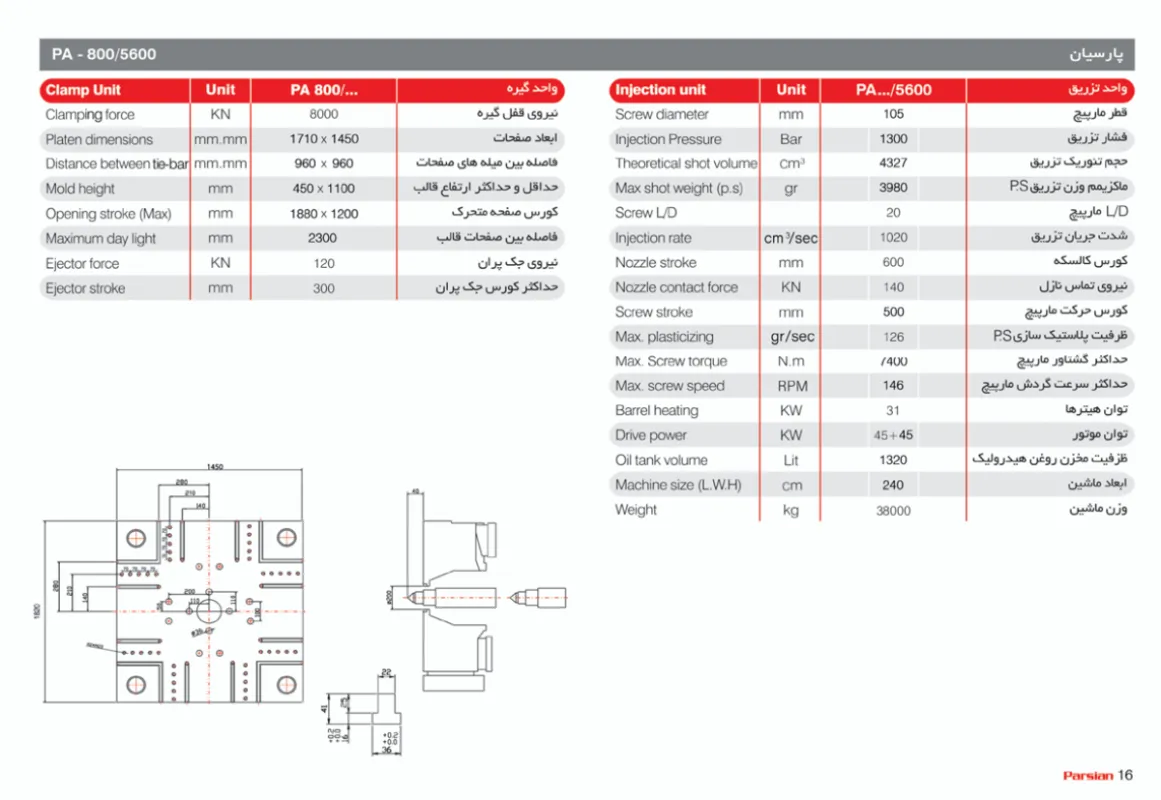 دستگاه تزریق پلاستیک 800 تن دو صفحه ایآرشیو صنعت -