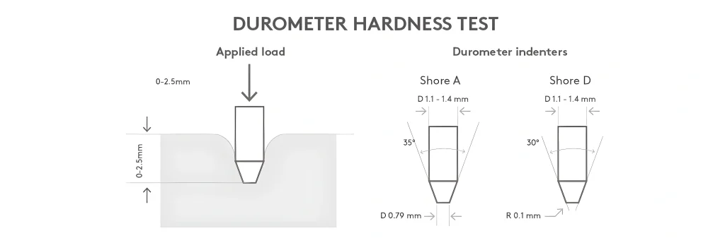 • Shore A : برای پلاستیک‌های نرم و لاستیک‌ها (PVC  نرم مانند سیلیکون )