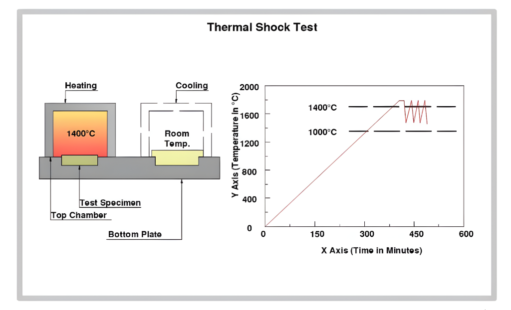 • بررسی آسیب‌ها یا ترک‌ها: پس از هر تغییر دمایی، مواد به‌دقت بررسی می‌شوند تا آسیب‌ها یا ترک‌های ایجادشده شناسایی شوند و نتایج نشان‌دهنده میزان مقاومت ماده در برابر تغییرات دمایی و شکستن یا ترک خوردن آن خواهد بود.