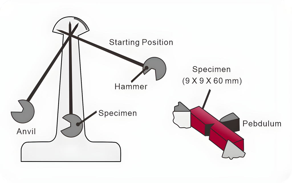 روش: در این روش، نمونه به‌صورت عمودی ثابت شده و یک آونگ از یک ارتفاع مشخص به آن برخورد می‌کند.