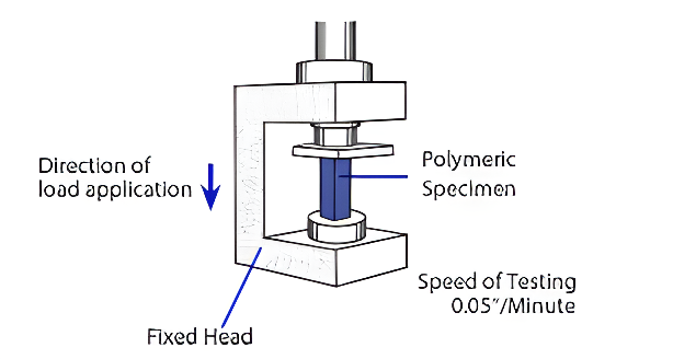 1. آماده‌سازی نمونه تست: نمونه پلاستیکی طبق استانداردهای بین‌المللی مانند ASTM D695 یا ISO 604 قالب‌گیری و آماده می‌شود .نمونه‌ها می‌توانند به صورت مکعبی، استوانه‌ای یا منشوری باشند.