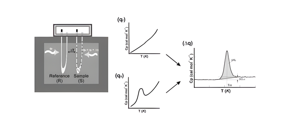 • گرم کردن نمونه: دمای نمونه به‌طور تدریجی افزایش می‌یابد و میزان انرژی گرمایی جذب یا آزاد شده توسط نمونه در دماهای مختلف اندازه‌گیری می‌شود.