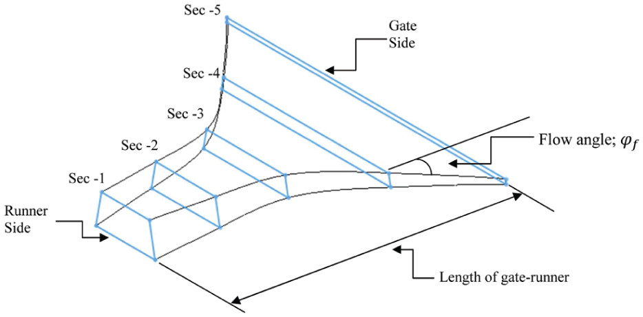 در اکثر طرحها، راهگاه در نیمه متحرک قالب ماشینکاری می شود ونیمه ثابت وجه مسطح آن را تشکیل می دهد. سطح مقطع راهگاه معمولأ تا رسیدن به گلویی تزریق ثابت باقی می ماند وتنها امکان دارد در ورودی به گلویی تزریق، عمق آن کاهش یافته وبه پهنای آن اضافه شود. به طورکلی عمق وپهنای راهگاهها به حجم مذاب تزریق شده بستگی دارد. همچنین تغییردر شکل راهگاهها می تواند سرعت مذاب را در ورود به حفره قالب کاهش یا افزایش دهد.(شکل راهگاهها باید به نحوی باشد که از چرخشی شدن حرکت مذاب جلوگیری کند،زیرا حرکت چرخشی مذاب درراهگاهها به حبس شدن هوای موجود در این قسمت در درون مذاب کمک می کند).
