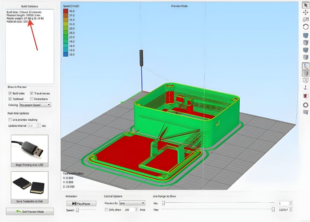 در گام بعد، فایل STL در یک نرم‌افزار اسلایسر (مانند Cura، PrusaSlicer یا Simplify3D) بارگذاری می‌شود. این نرم‌افزار مدل را بر روی صفحه ساخت نمایش می‌دهد و امکان ویرایش‌هایی مانند جابجایی، چرخش، تغییر مقیاس یا حتی تکرار چندین نمونه از مدل را در اختیار کاربر قرار می‌دهد.