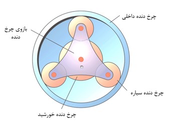 به طور کلی این مجموعه های چرخ دنده ای از 4 بخش چرخ دندنه داخلی، چرخ دنده خورشید، چرخ دنده های سیاره ای و یک بازو carrier که چرخ دنده های سیاره رو به هم متصل میکند و با چرخ دنده خورشید هم مرکز می باشد. اجزای اصلی در شکل زیر نشان داده شده اند. شفت ورودی می تواند به چرخ دنده خورشید متصل باشد و شفت خروجی به بازو carrier. درواقع با دوران چرخ دنده خورشید، مجموعه چرخ دنده های سیاره ای که از یک طرف با چرخ دنده خورشید و از طرف دیگر با چرخ دنده داخلی فیکس درگیر هستند، شروع به چرخش حول محور گیربکس می کنند و در نتیجه بازوی carrier نیز حلو این محور دوران می کند و با نسبتی مشخص سرعت و گشتاور را انتقال می دهد. لازم به ذکر است که این گونه گیربکس ها می توانند دارای چند استیج یا چند مجموعه خورشیدی باشند و نسبت های تبدیل مختلفی را داشته باشند. که در شکل زیر نشان داده شده اند.