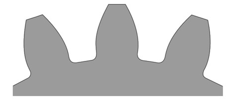 چرخ دنده ها دارای دندانه هایی هستند که با هم جفت می شوند و فرایند انتقال قدرت را پیش میبرند. از آنجا که سطح تماس دندانه ها و به دنباله آن هندسه ی سطح تماس نقش اساسی در روند انتقال گشتاور را ایفا می کند در این بخش به هندسه پروفیل استاندارد در چرخ دنده ها می پردازیم. یکی از متداول ترین پروفیل دندانه ها تحت عنوان “منحنی اینولوت” یا  involute curve می باشد که در اکثر صنایع دنیا کاربرد دارد. اصلی ترین ویژگی منحنی اینولوت برقراری نسبت سرعت زاویه ای ثابت بین دو چرخ دنده درگیر است (حتی اگر خطا در نصب محور های چرخ دنده در فاصله های تئوریک و لقی بین دندانه ها وجود داشته باشد). از لحظه ی اول درگیری و تماس دو دندانه، سرعت دورانی چرخ دنده اول با دوم متناسب است. در نتیجه، حرکت دورانی حاصل از این درگیری به صورت یکنواخت و روان صورت می گیرد. اگر عکس این اتفاق صورت بگیرد، شتاب های دورانی خصوصا در توقف و شروع حرکت پدیدار می شوند که به ارتعاش و نویز و از همه مهم تر لرزش دورانی که پدیده ای خطرناک می تواند باشد می انجامد.  شکل دندانه های با منحنی اینولوت را در شکل پایین مشاهده می کنید.