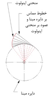 توجه داشته باشید که مرکز انحنای محنی اینولوت همواره بر روی سطح تماس نخ و استوانه می باشد. همچنین هر خطی که مماس بر منحنی اینولوت باشد، عمود بر نخ می باشد (همانند شکل زیر). بر همین اساس میتوان منحنی های اینولوت را برای چرخ دنده ها ترسیم کرد.