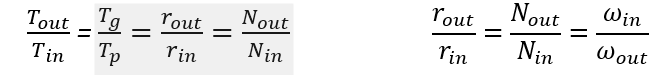 در سیستم چرخ دنده ای نشان داده شده، نیروی F برای هردو چرخ دنده ثابت است ولی گشتاور این نیرو برای دو چرخ دنده ثابت نیست چرا که بازوی گشتاور این نیرو که همان شعاع دایره گام می باشد برای دو چرخ دنده متفاوت است. لذا. بدیهی است که چرخ دنده پینیون گشتاور کمتری دارد چرا که شعاع آن طبق شکل کمتر است. بنابراین مزیت مکانیکی سیستم چرخ دنده ای زیر را تعریف میکنیم: