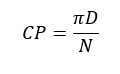 گام دایره ای: Circular Pitch طول کمانی است بر روی قوس دایره گام بین منحنی های مربوط به دندانه های پهلوی هم که از رابطه زیر بدست می آید. (برحسب اینچ یا میلیمتر می باشد)