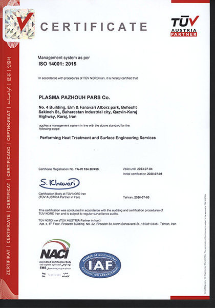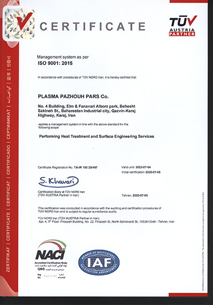 4. اکسیداسیون پلاسمایی: این فرآیند بلافاصله پس از نیتروژندهی پلاسمایی انجام شده و با تشکیل یک لایه اکسید آهن سیاه رنگ (Fe3O4) بر روی سطح، مقاومت به خوردگی فولاد را به صورت قابل توجهی افزایش میدهد.